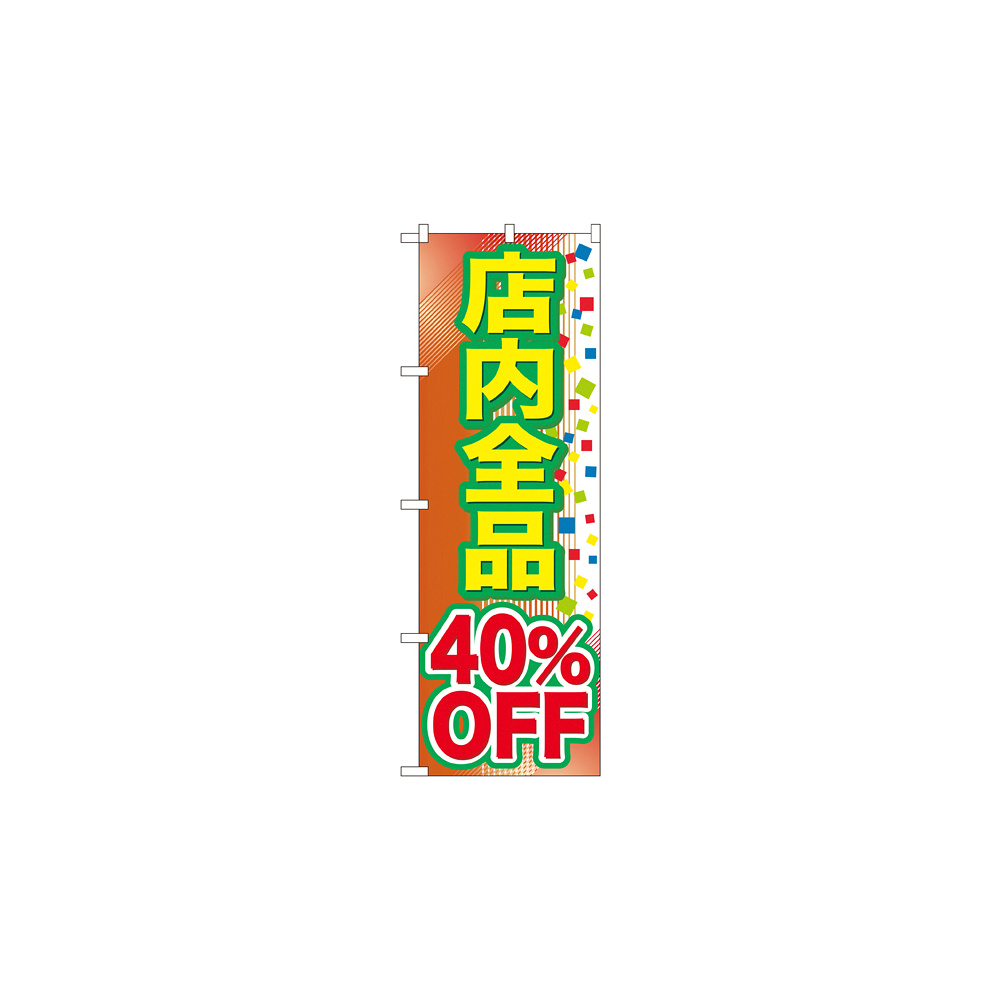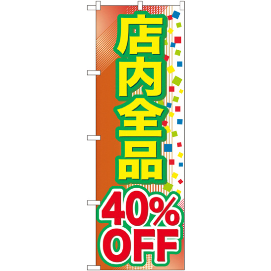 店舗やお店を盛り上げるのぼり旗。表示内容は、店内全品 40%OFFです。