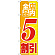 店舗やお店を盛り上げるのぼり旗。表示内容は、店内全品 5割引です。