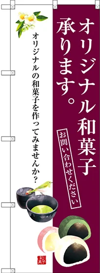 店舗やお店を盛り上げるのぼり旗。表示内容は、オリジナル和菓子承ります。です。