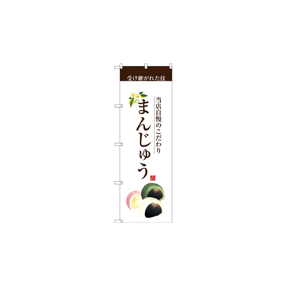 店舗やお店を盛り上げるのぼり旗。表示内容は、まんじゅう (茶文字)です。