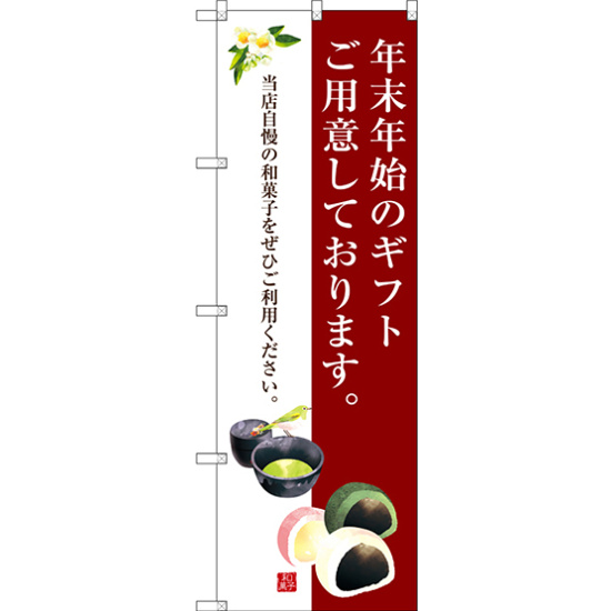 店舗やお店を盛り上げるのぼり旗。表示内容は、年末年始のギフトご用意しております。です。