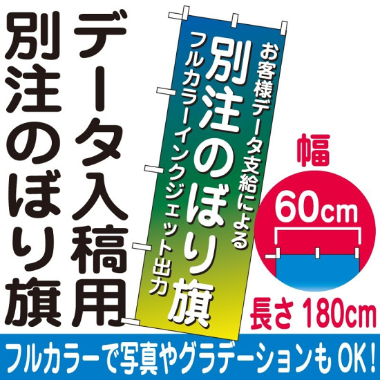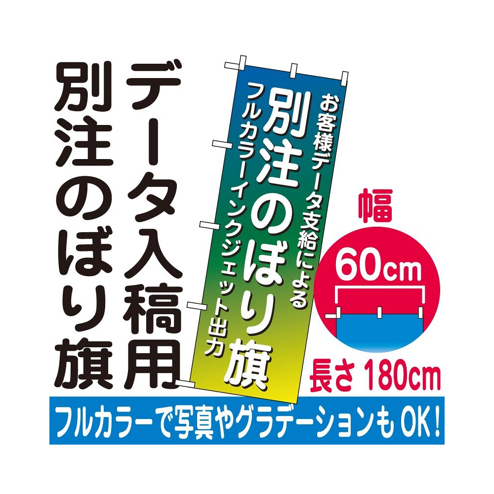 商品説明:別注のぼり旗製作 フルカラーインクジェット出力・ポンジ生地 ※要データ入稿 幅60cm×高さ180cm ※まとめ割価格はデータ1種類の場合です。
