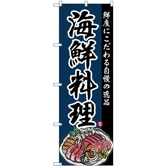 - (新)のぼり旗 海鮮料理 鮮度にこだわる自慢の逸品 (SNB-4212)