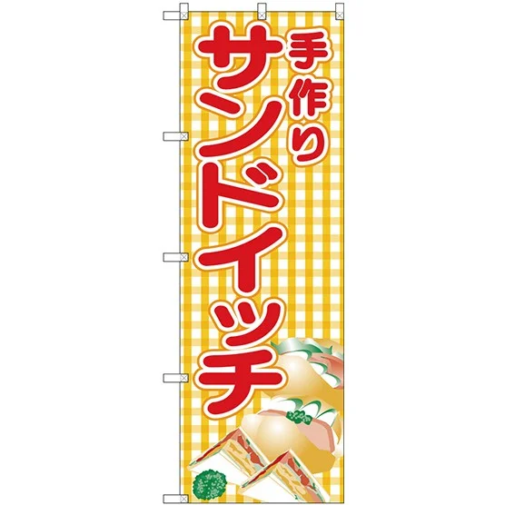 店舗やお店を盛り上げるのぼり旗。表示内容は、手作りサンドイッチ(黄チェック)です。