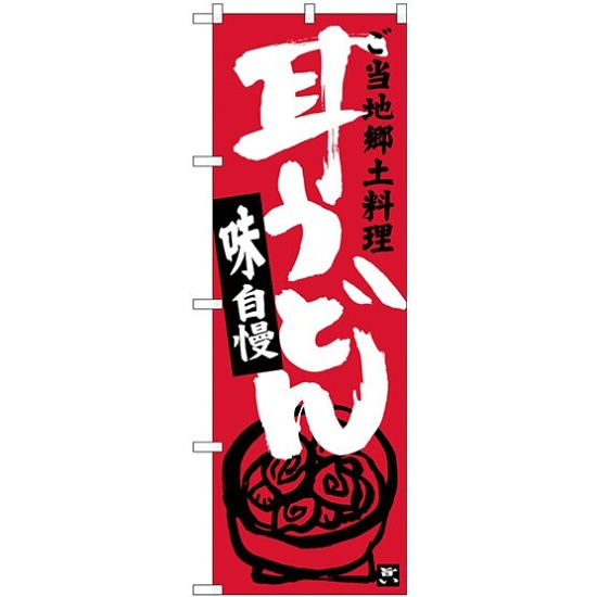 店舗やお店を盛り上げるのぼり旗。表示内容は、耳うどんです。