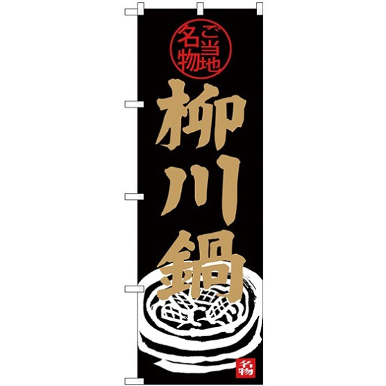 商品説明:のぼり旗 柳川鍋 黒地 鍋のイラスト (SNB-3973)
