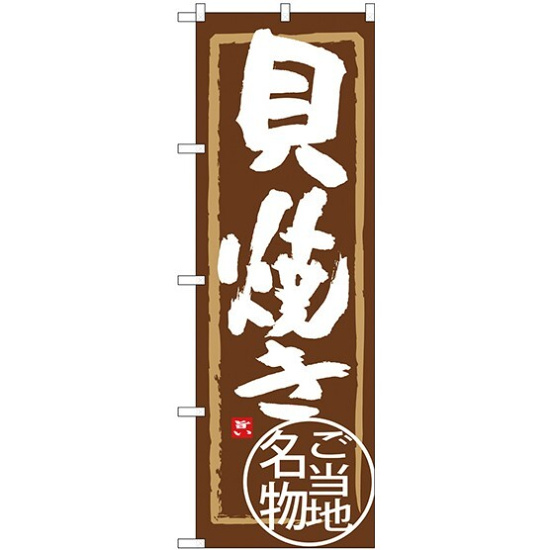店舗やお店を盛り上げるのぼり旗。表示内容は、貝焼きです。