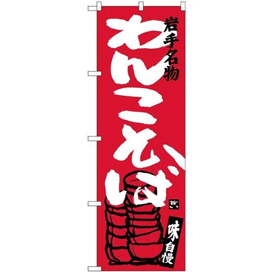 店舗やお店を盛り上げるのぼり旗。表示内容は、わんこそばです。