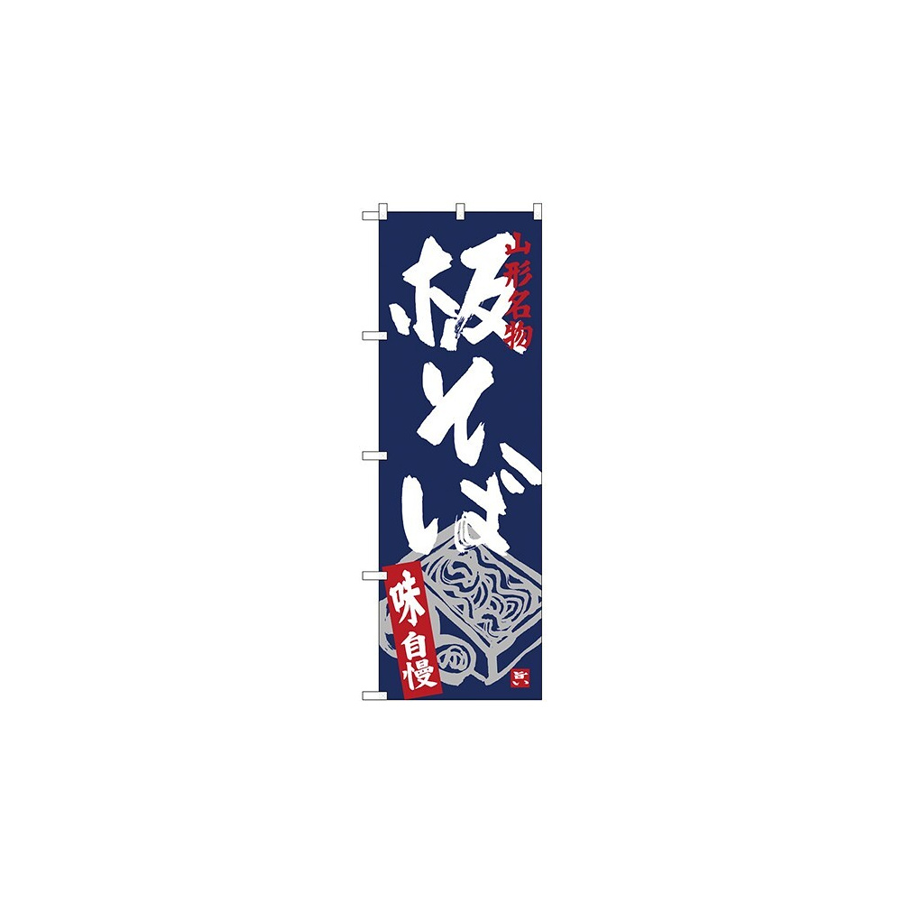 のぼり旗 板そば 紺地 下段にイラスト (SNB-3891)