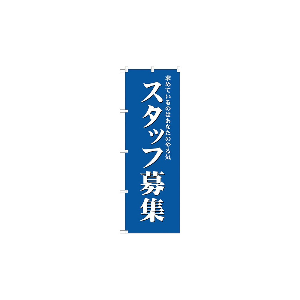店舗やお店を盛り上げるのぼり旗。表示内容は、スタッフ募集(青)です。