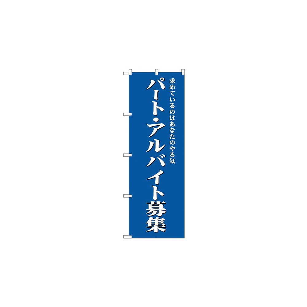 店舗やお店を盛り上げるのぼり旗。表示内容は、パート・アルバイト募集(青)です。