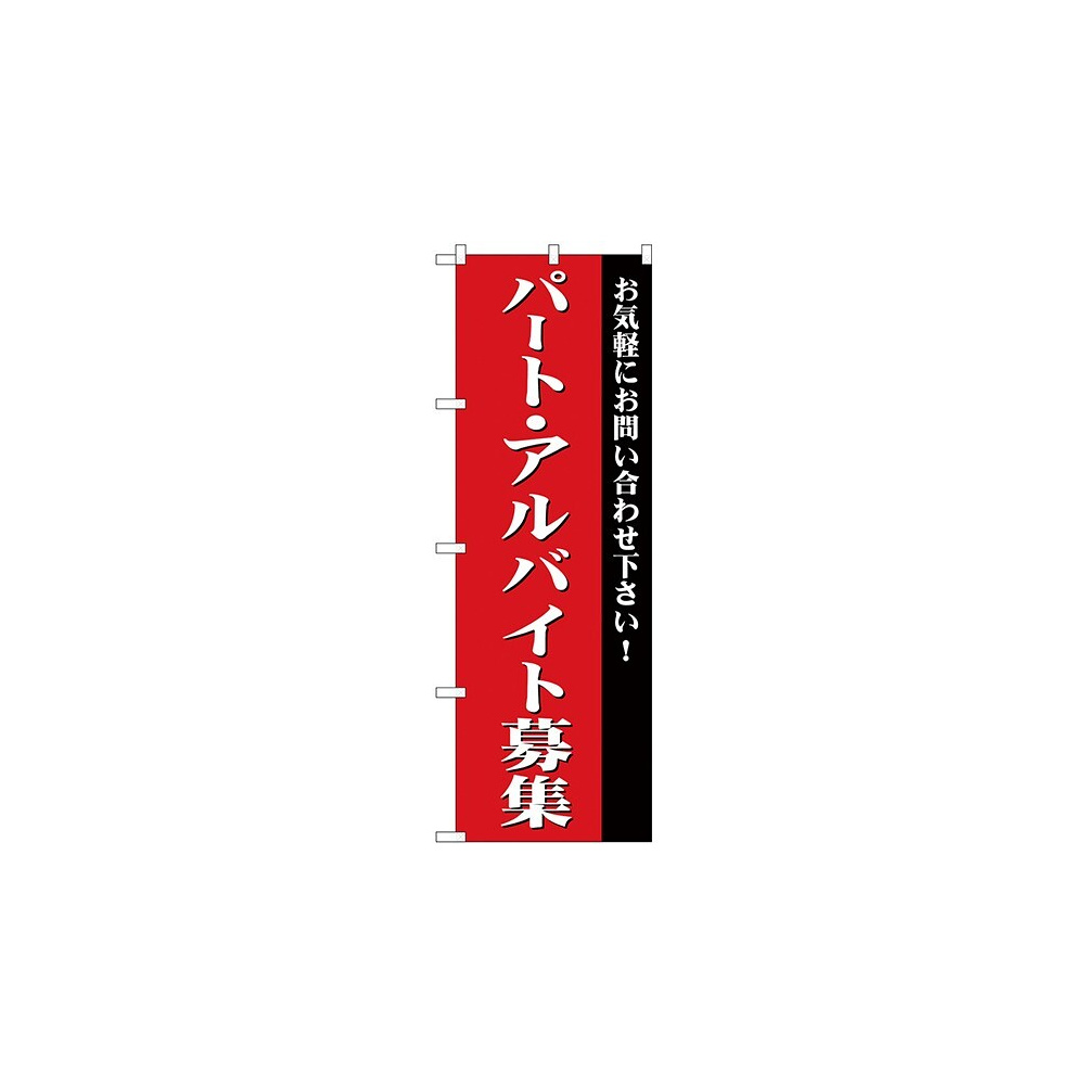 店舗やお店を盛り上げるのぼり旗。表示内容は、パート・アルバイト募集(赤)です。