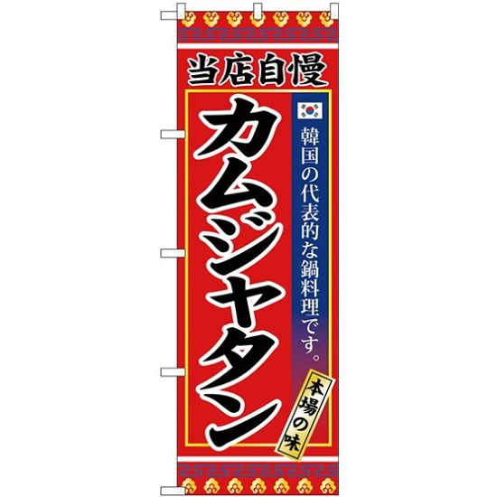 店舗やお店を盛り上げるのぼり旗。表示内容は、カムジャタンです。