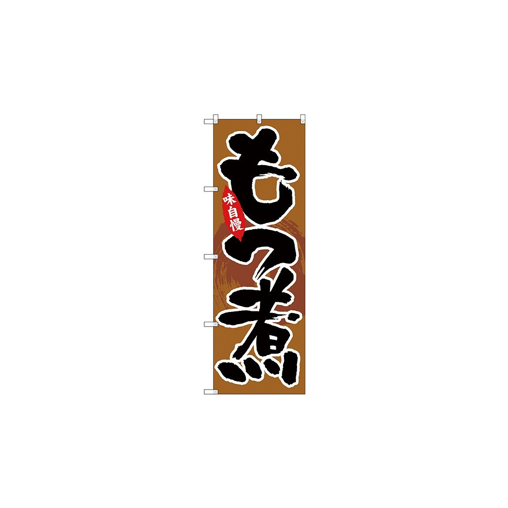店舗やお店を盛り上げるのぼり旗。表示内容は、もつ煮です。