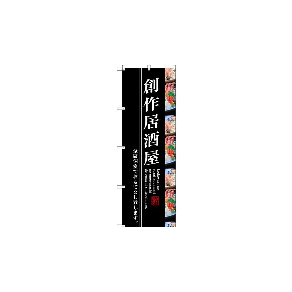 店舗やお店を盛り上げるのぼり旗。表示内容は、創作居酒屋です。