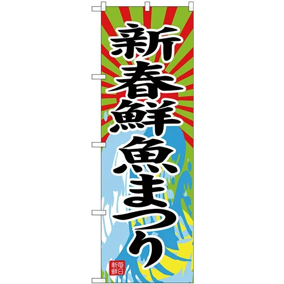店舗やお店を盛り上げるのぼり旗。表示内容は、新春鮮魚まつりです。