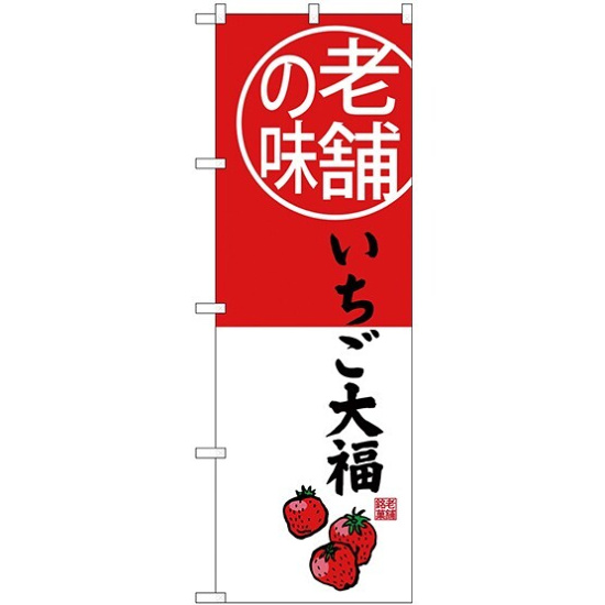 店舗やお店を盛り上げるのぼり旗。表示内容は、老舗の味 いちご大福です。