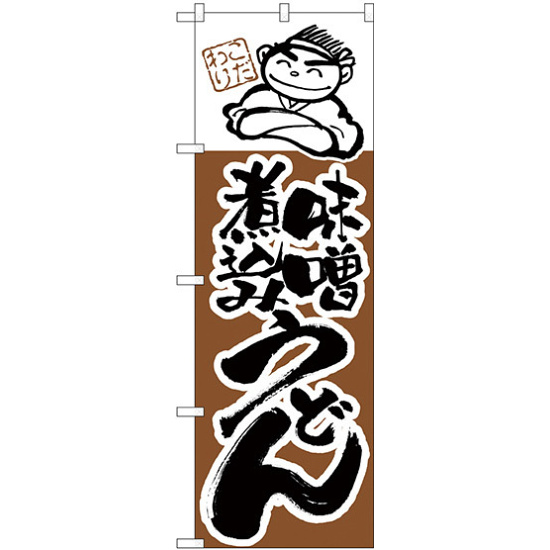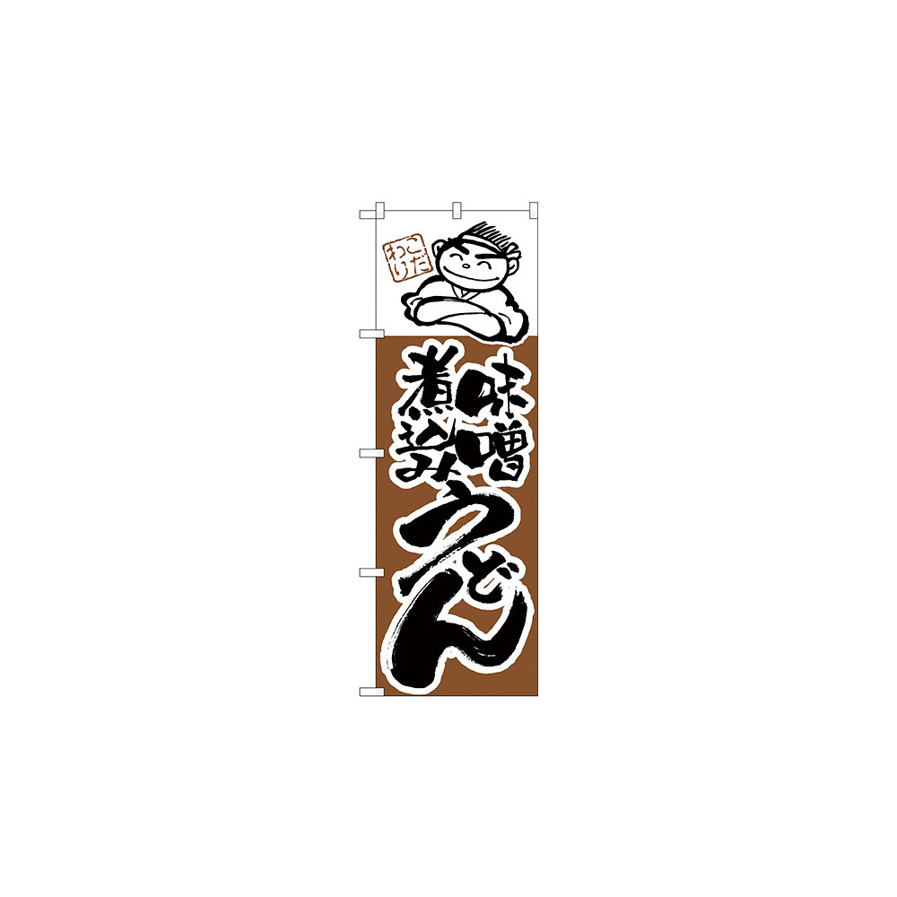 店舗やお店を盛り上げるのぼり旗。表示内容は、味噌煮込みうどんです。