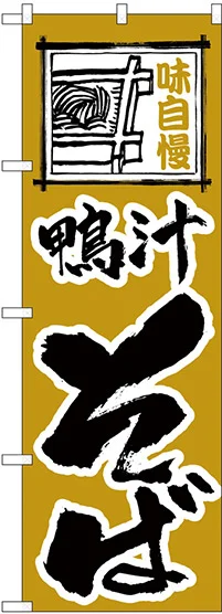 店舗やお店を盛り上げるのぼり旗。表示内容は、鴨汁そばです。