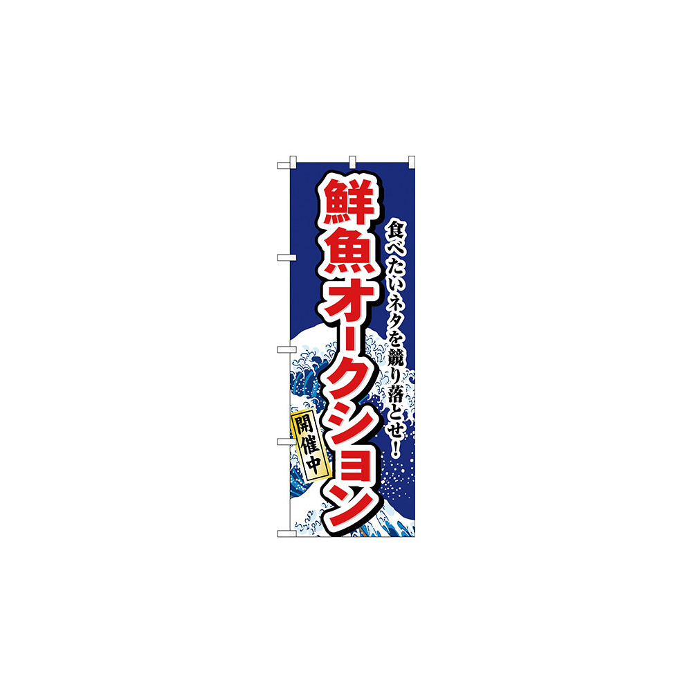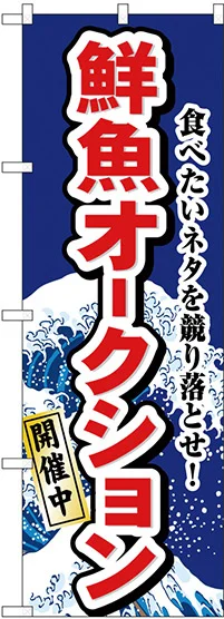 店舗やお店を盛り上げるのぼり旗。表示内容は、鮮魚オークションです。