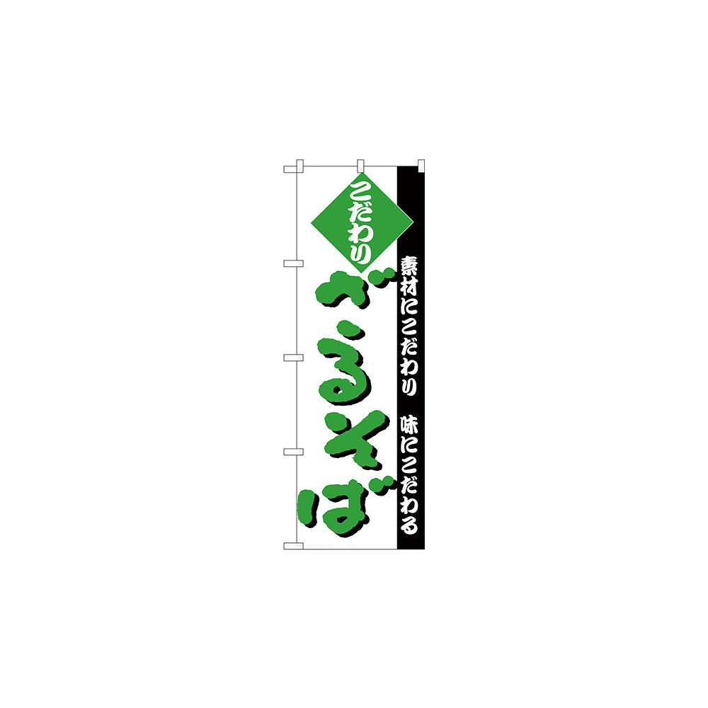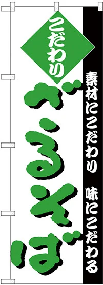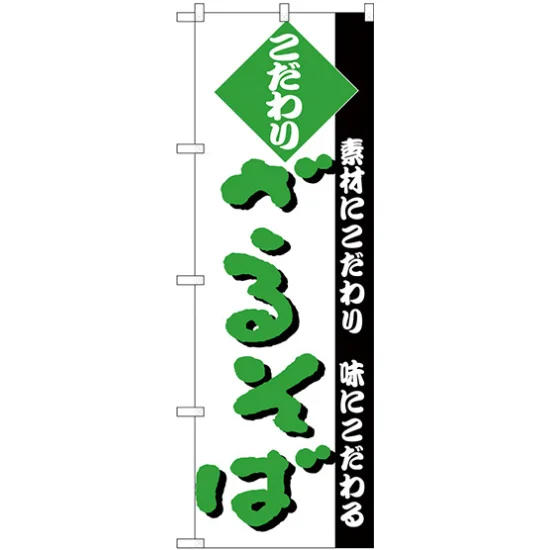 のぼり旗 こだわり ざるそば 白地/緑文字 (H-124)