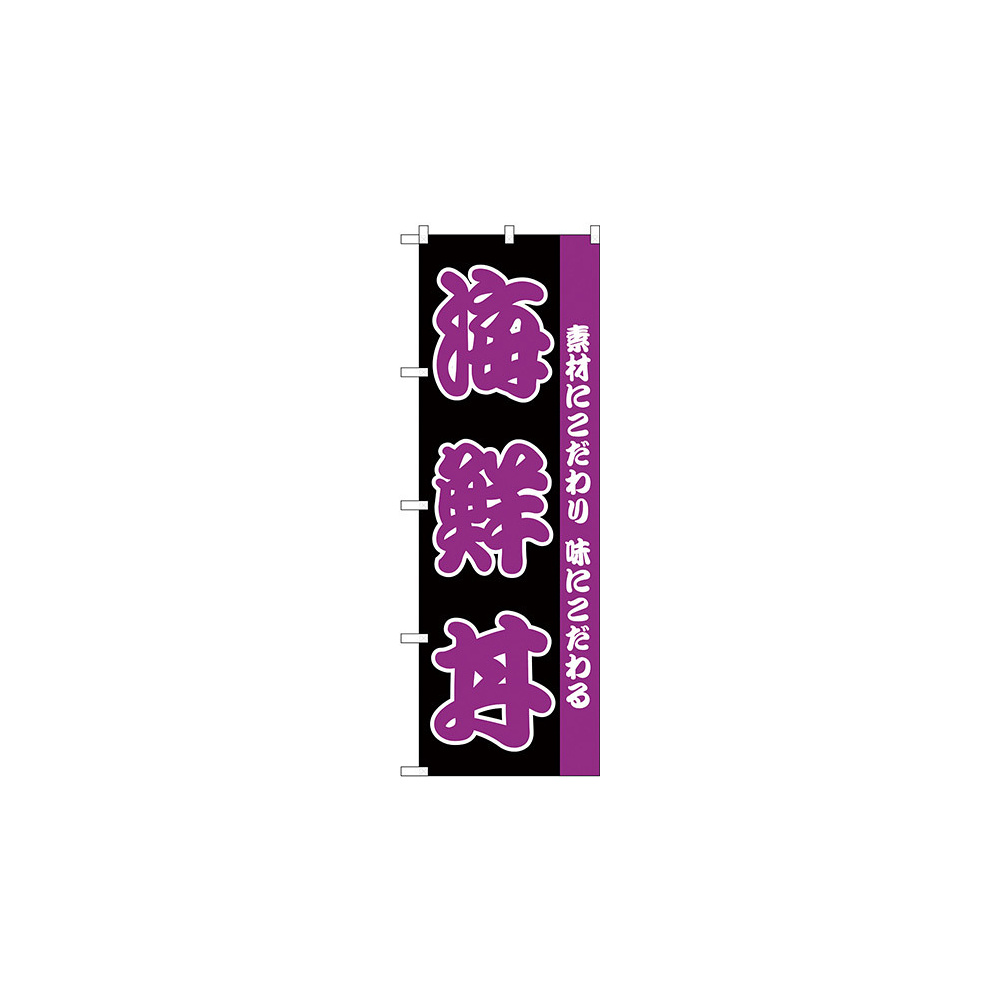 商品説明:のぼり旗 海鮮丼 黒地/紫 (H-139)