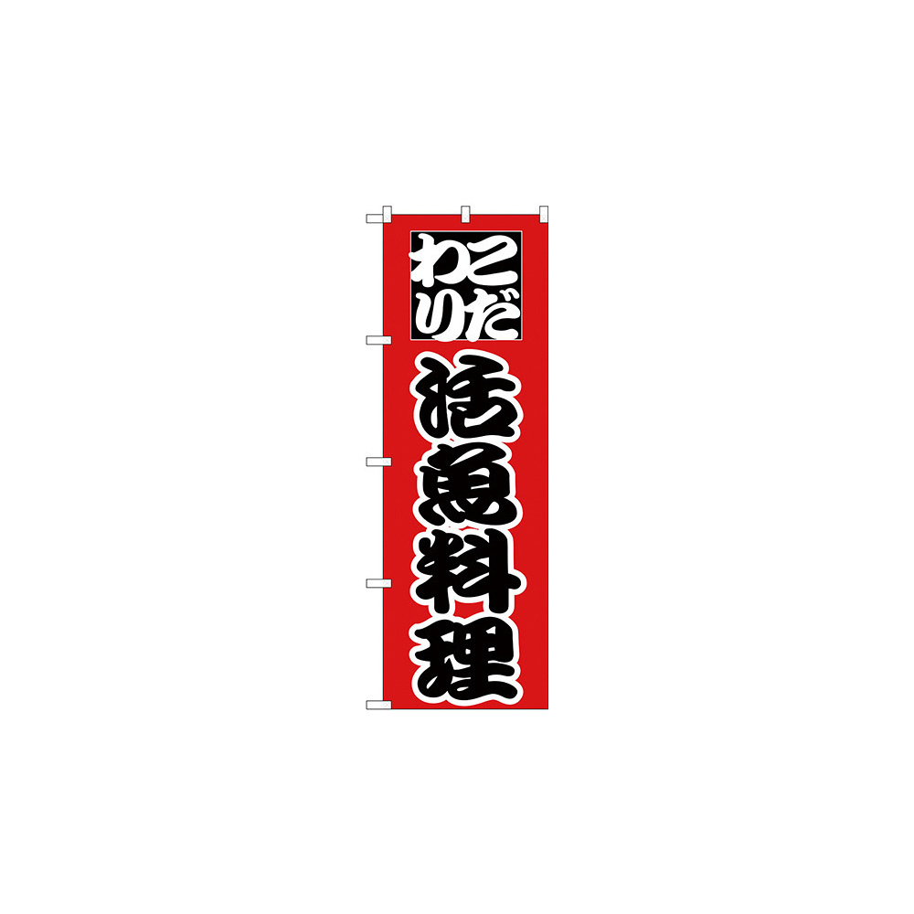 - のぼり旗 こだわり 活魚料理 赤/黒 (H-169)