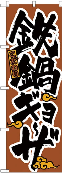 店舗やお店を盛り上げるのぼり旗。表示内容は、鉄鍋ギョーザです。