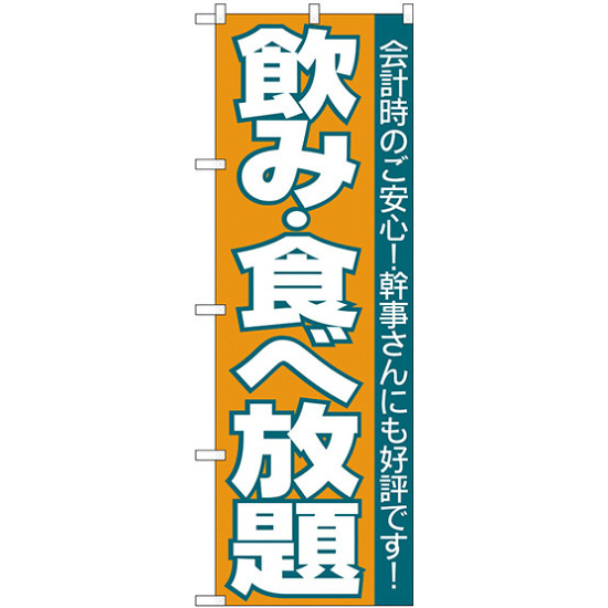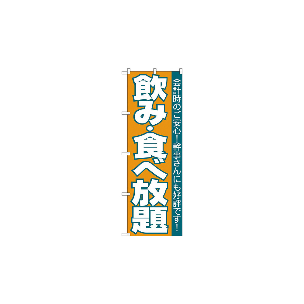 店舗やお店を盛り上げるのぼり旗。表示内容は、飲食放題です。