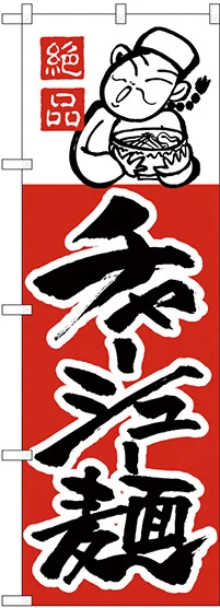 のぼり旗 チャーシュー麺 絶品 赤地/黒文字 イラスト (H-3)
