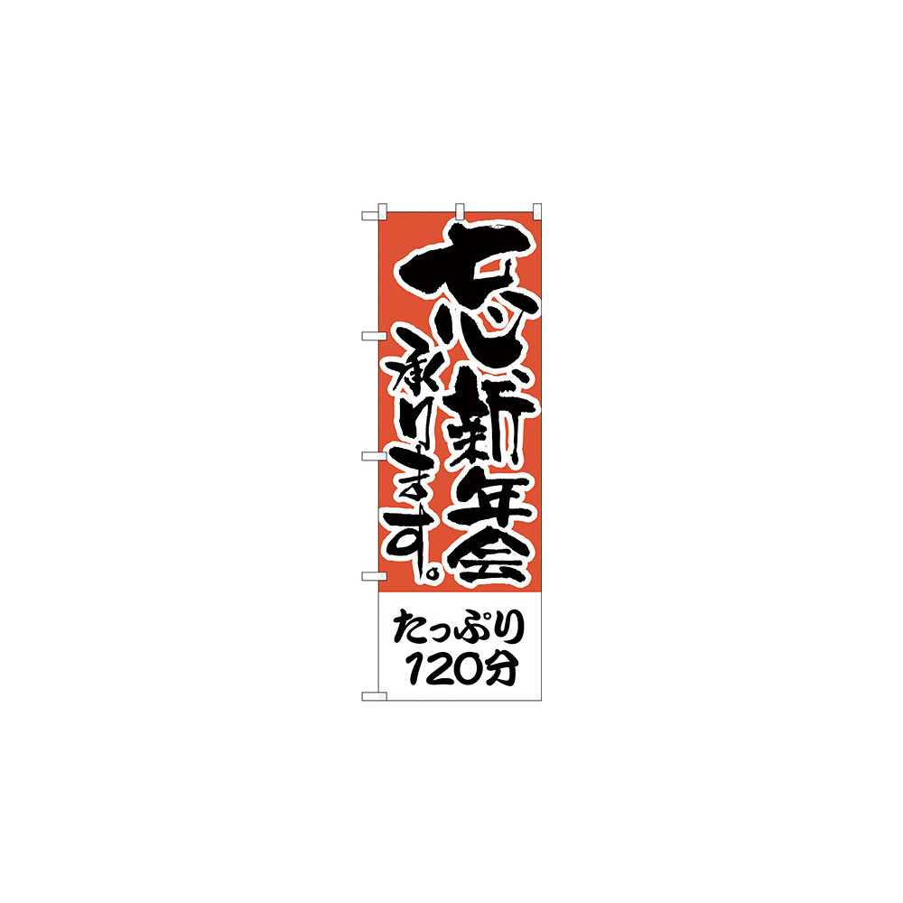 店舗やお店を盛り上げるのぼり旗。表示内容は、たっぷり120分です。