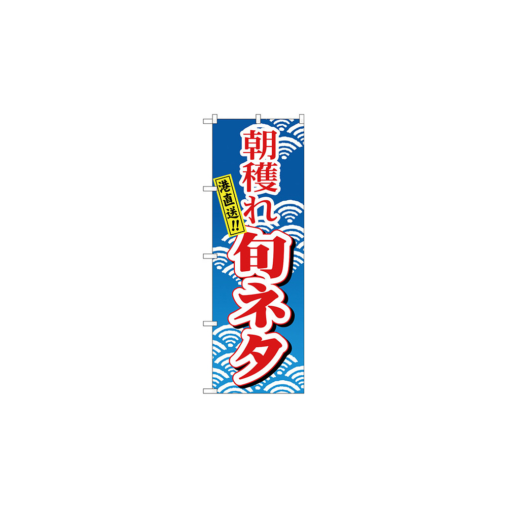 店舗やお店を盛り上げるのぼり旗。表示内容は、朝穫れ旬ネタです。