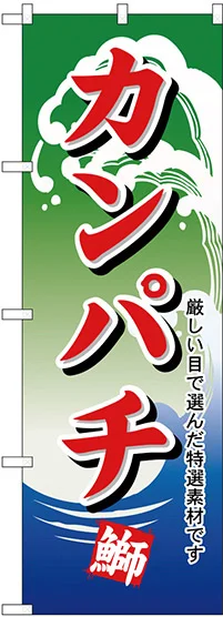 店舗やお店を盛り上げるのぼり旗。表示内容は、カンパチです。