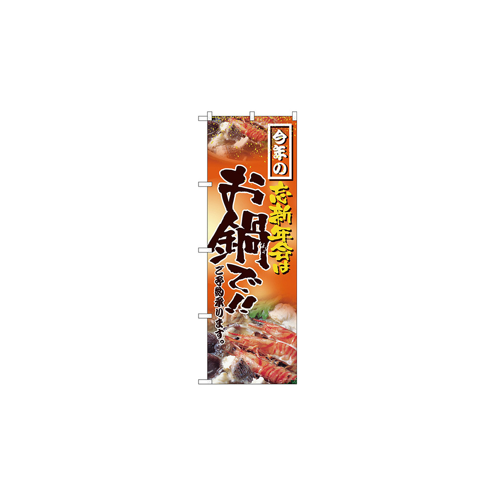 商品説明:のぼり旗 忘新年会はお鍋で (H-5001)