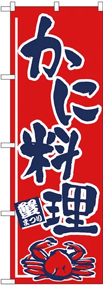 店舗やお店を盛り上げるのぼり旗。表示内容は、かに料理です。