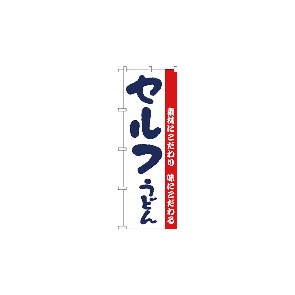 店舗やお店を盛り上げるのぼり旗。表示内容は、セルフうどんです。