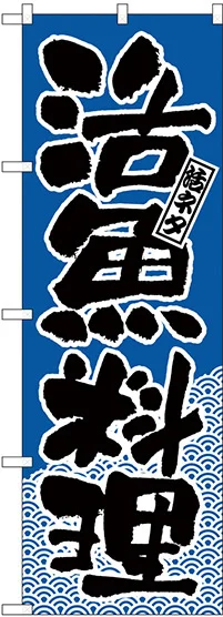 店舗やお店を盛り上げるのぼり旗。表示内容は、活魚料理です。