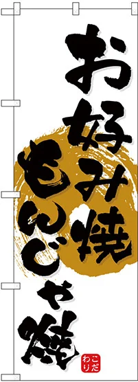 店舗やお店を盛り上げるのぼり旗。表示内容は、お好み焼・もんじゃです。