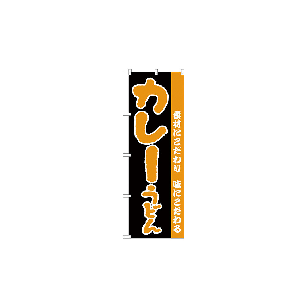 のぼり旗 カレーうどん 素材にこだわり 黒地/オレンジ (H-70)