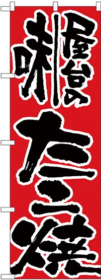 店舗やお店を盛り上げるのぼり旗。表示内容は、屋台の味たこ焼です。