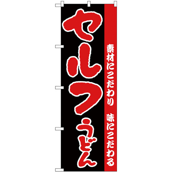 店舗やお店を盛り上げるのぼり旗。表示内容は、セルフうどんです。