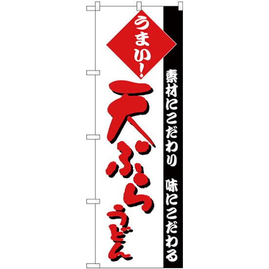 のぼり旗 天ぷらうどん 素材にこだわり 味にこだわる 赤文字 (H-74)
