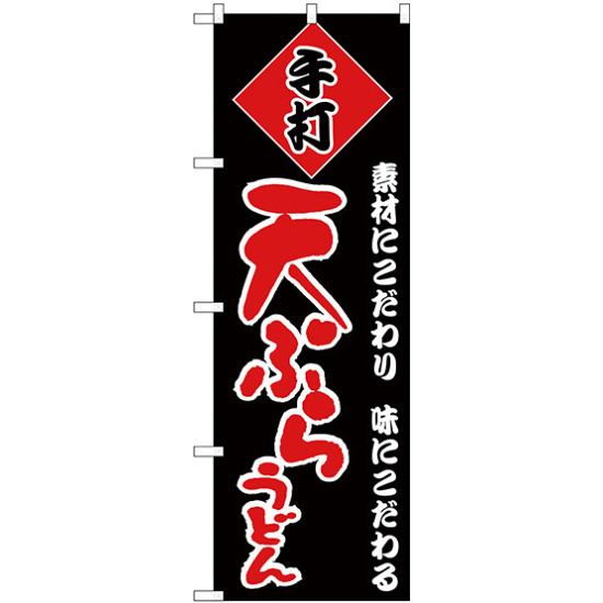 商品説明:のぼり旗 天ぷらうどん 黒地 赤文字(H-90)