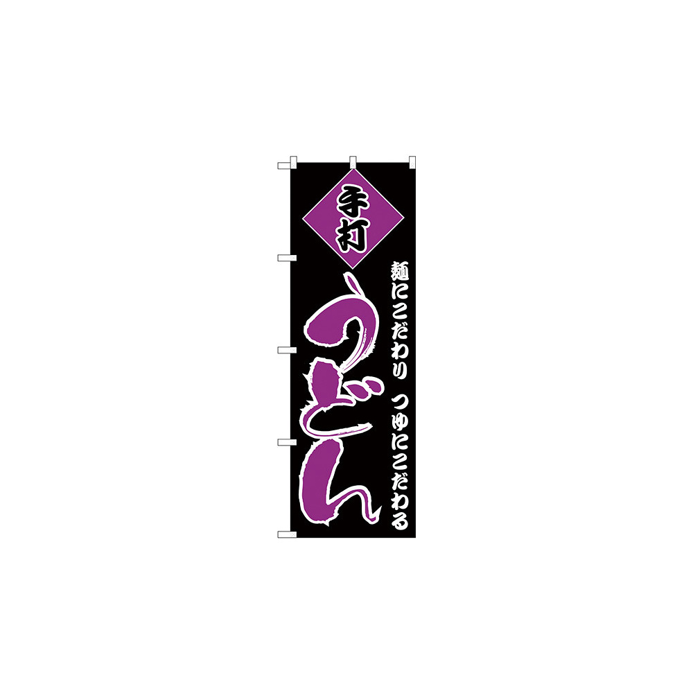 のぼり旗 手打ちうどん 麺にこだわり つゆにこだわる 黒地/紫文字 (H-96)