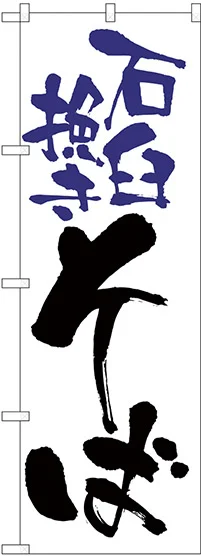 のぼり旗 石臼挽きそば 白地(H-9878)