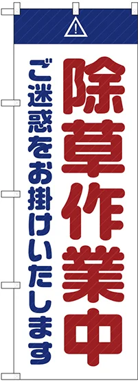 のぼり旗 除草作業中 ご迷惑 白 (GNB-2834)