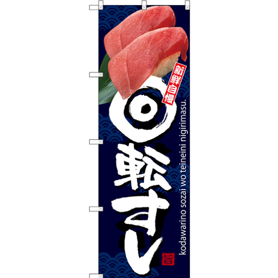 商品説明:のぼり旗 回転すし 青地 (SNB-3233)