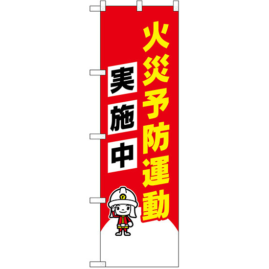 商品説明:防犯のぼり旗 火災予防運動実施中 イラスト入り (23633)