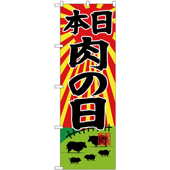 のぼり旗 本日肉の日 牧場イラスト (SNB-4399)