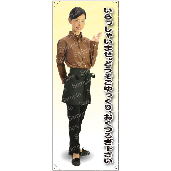 - いらっしゃいませ。どうぞごゆっくり・・・ 前掛短 等身大バナー 素材:トロマット(厚手生地) (62307)
